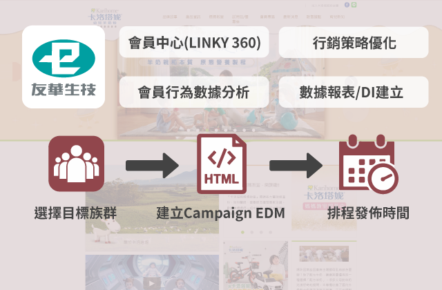 協助友華集團導入專屬會員系統,並建置專屬品牌網站整合多元行銷渠道~並針對會員提供專屬個人化行銷..
