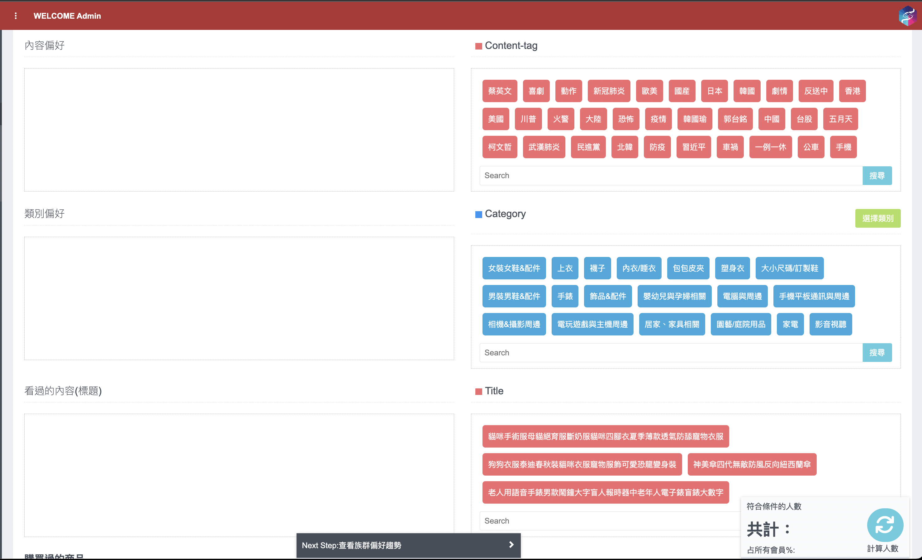 LINKY 360提供您 | 建立會員DI Tag(Deep Insight)行為洞察 針對自訂受眾,站內即可發送LINE訊息 |