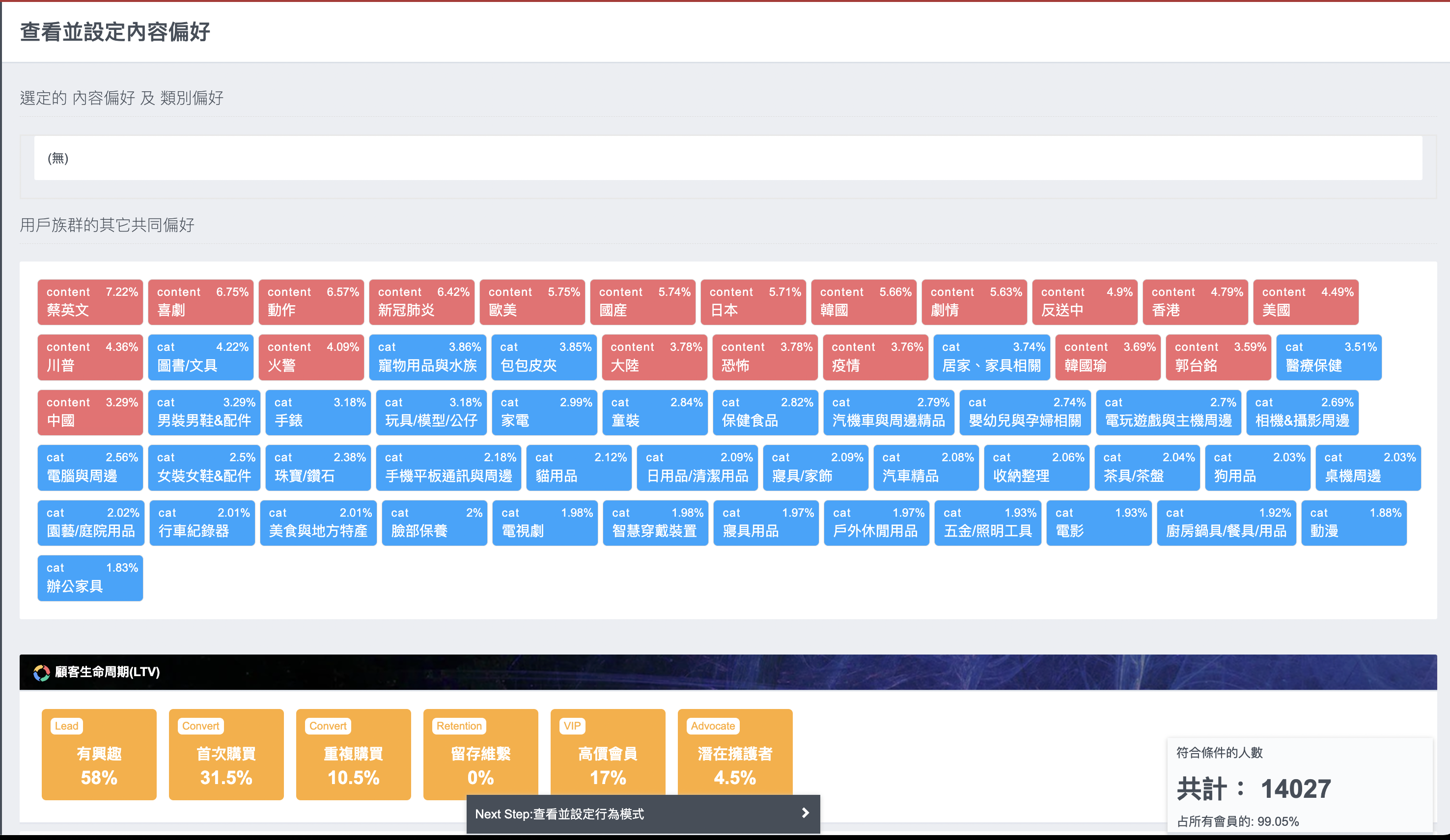 LINKY 360提供您 | 全自動客戶生命週期分析(LTV)模式~讓企業清楚瞭得知會員轉換價值,並一覽整體會員在不同階段的分佈及狀態。 |