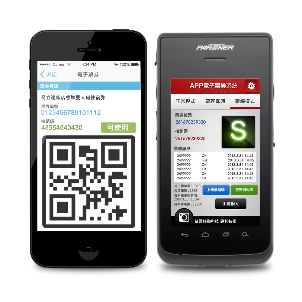 提供現場快速核銷驗票的專用硬體,可直接快速掃瞄手機螢幕,直接辨識。