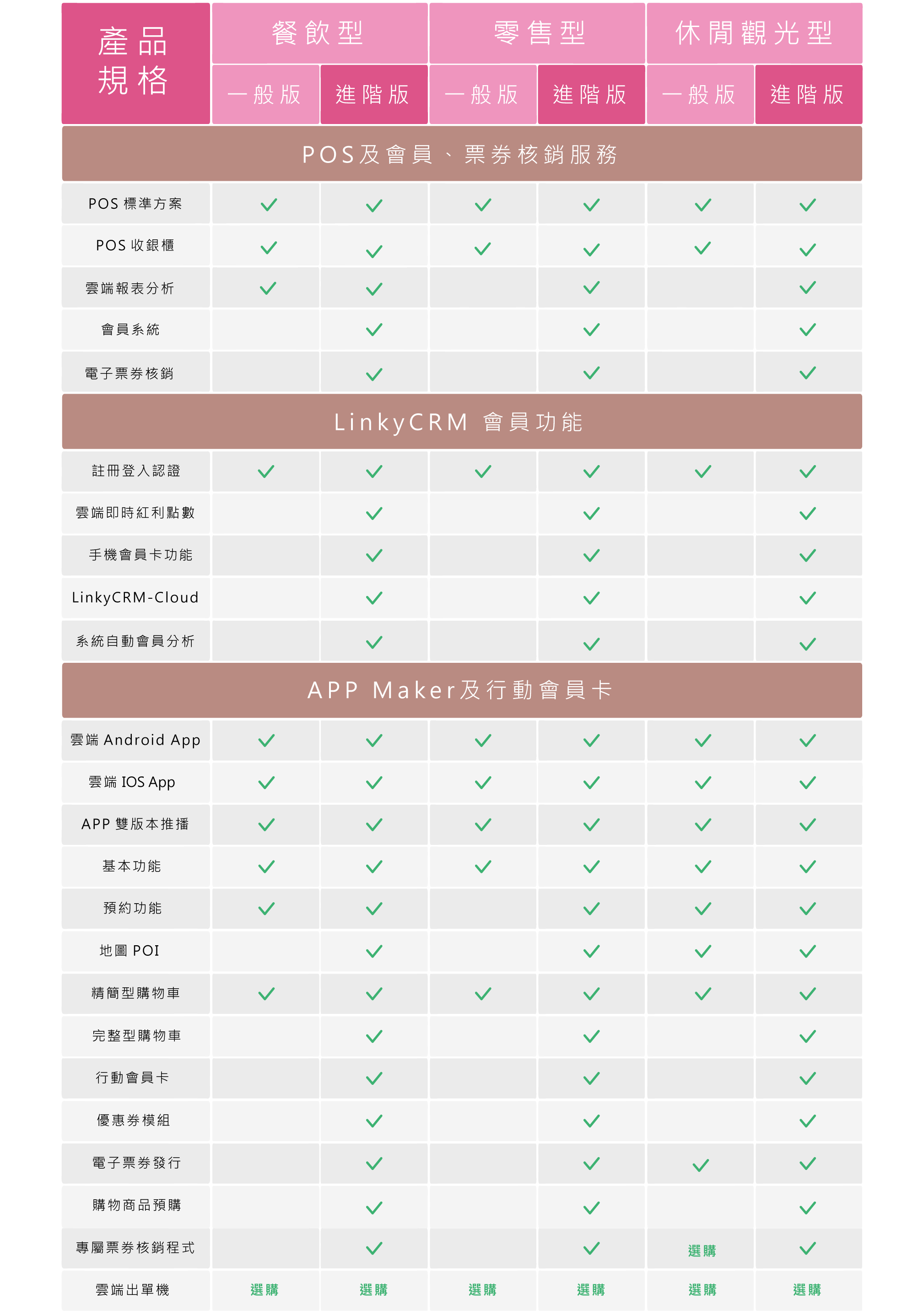 APP全功能、購物車開店、會員卡紅利積點系統、串接POS等各式功能,一應俱全!一次搞定,不用再為惱人的系統整合傷腦筋了!