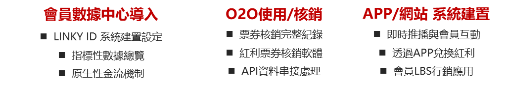 ●紅利兌換系統:建立紅利兌換平台,讓客戶可以通過消費累積紅利點數,並將紅利點數兌換成折扣券、免費票券等。